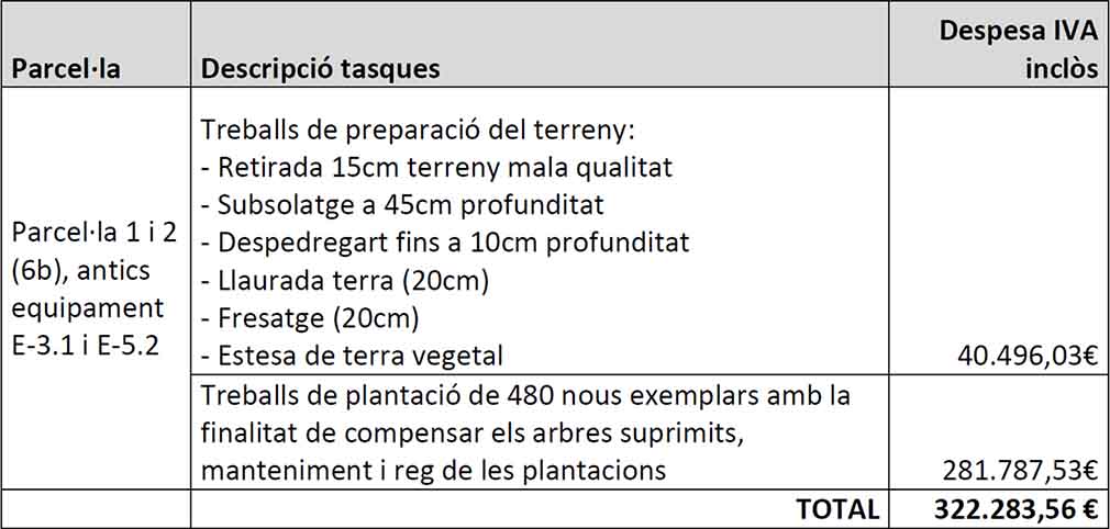 Segons el projecte d’Obres de trasplantament d’arbres que data de l’octubre de 2021: